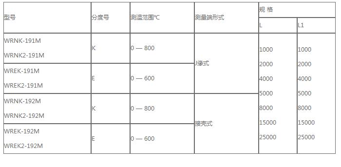 鍋爐熱電偶型號及規格參數