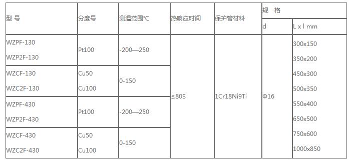 防腐熱電阻型號及規格
