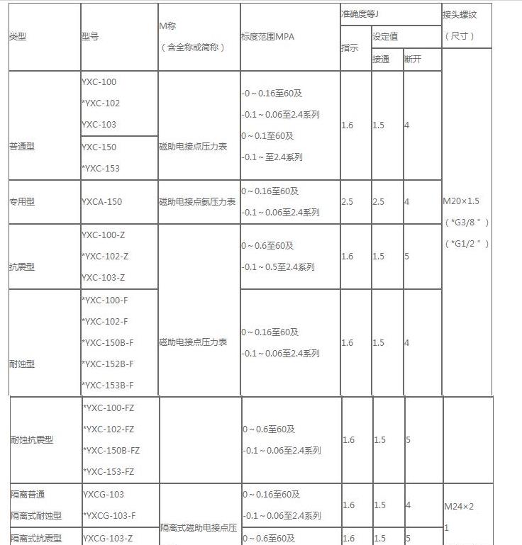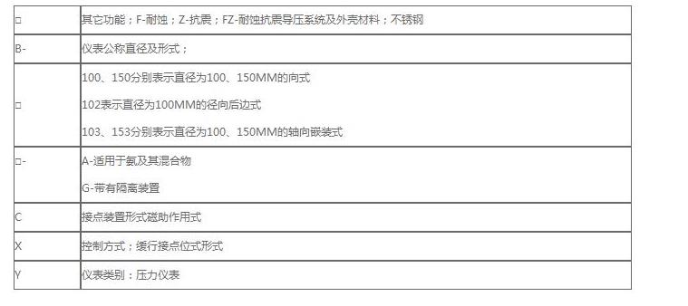 磁助電接點壓力表的型號標示